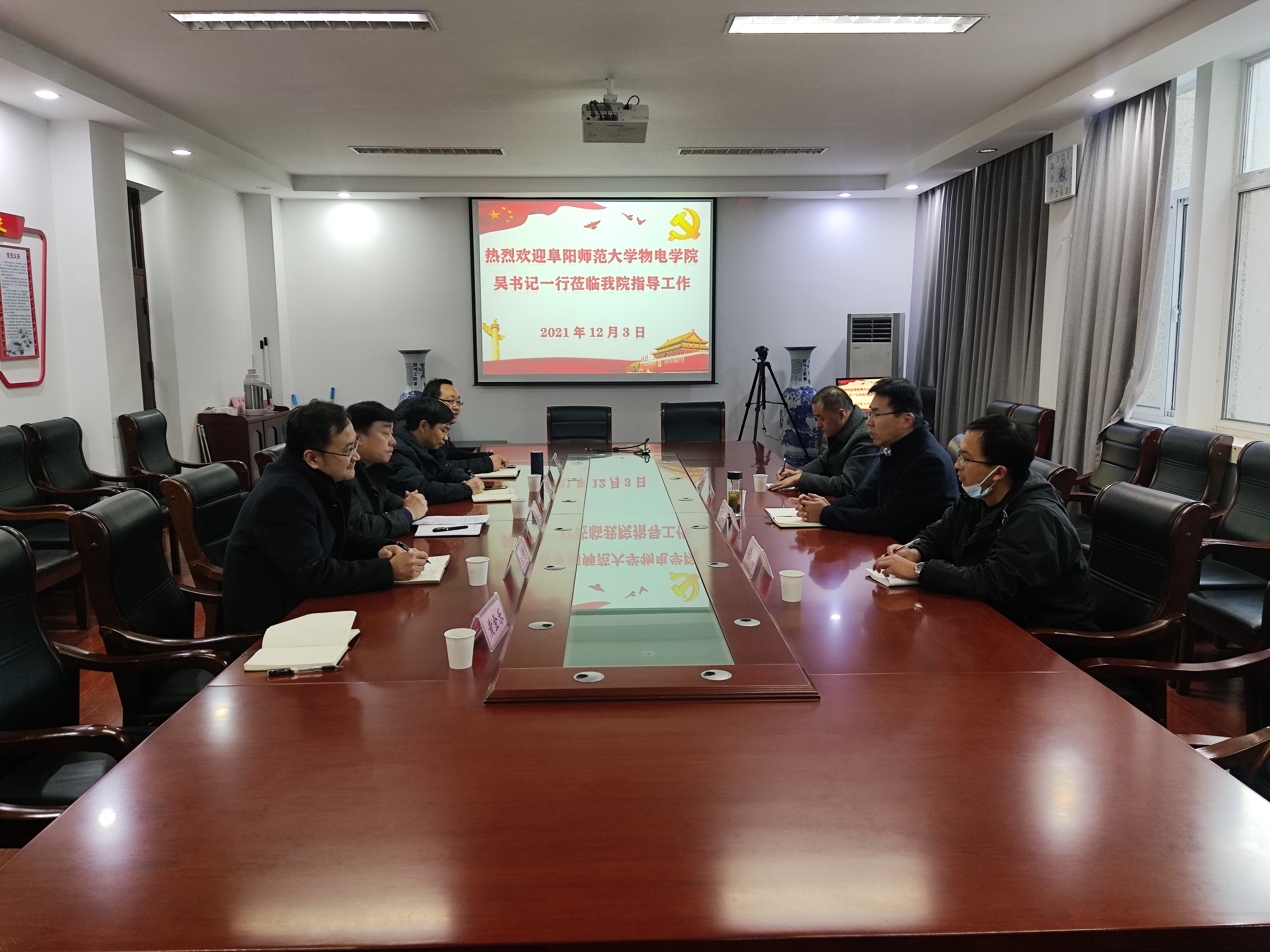 12月3日,阜阳师范大学麻豆网 党委书记吴学军一行来麻豆网 交流“三全育人”开展情况。学院党委书记吴云主持交流座谈会。